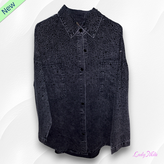 Camicia nera di jeans con brillantini