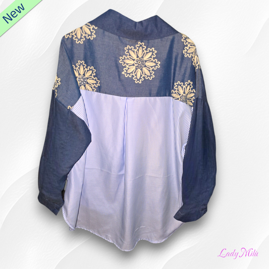 Camicia jeans righe e fiori