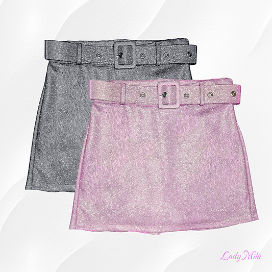 Minigonna laminata argento con shorts