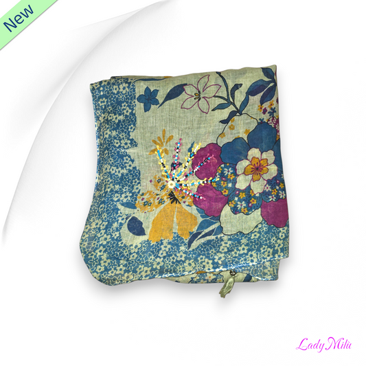 Pashmina sfumature azzurro con fiorellini