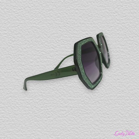 Occhiali verdi con glitter