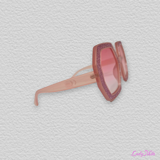 Occhiali rosa con glitter