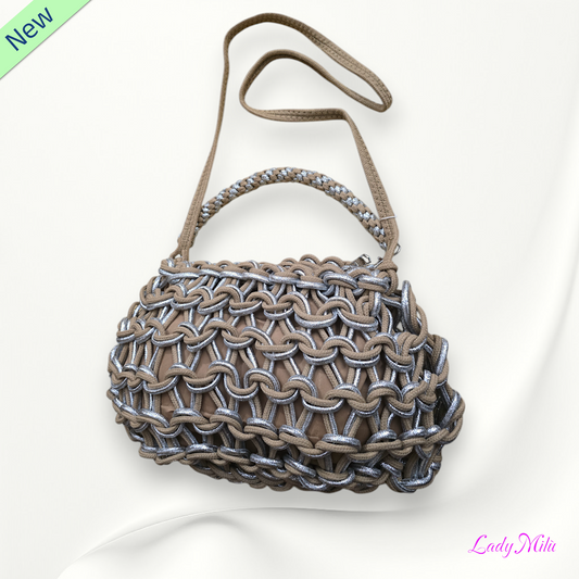 EsauritoBorsa uncinetto tortora e argento