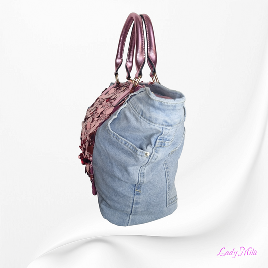 Borsa Jeans rosa metallizzato e paillettes