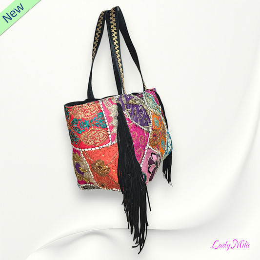 Borsa multicolor perline e paillettes