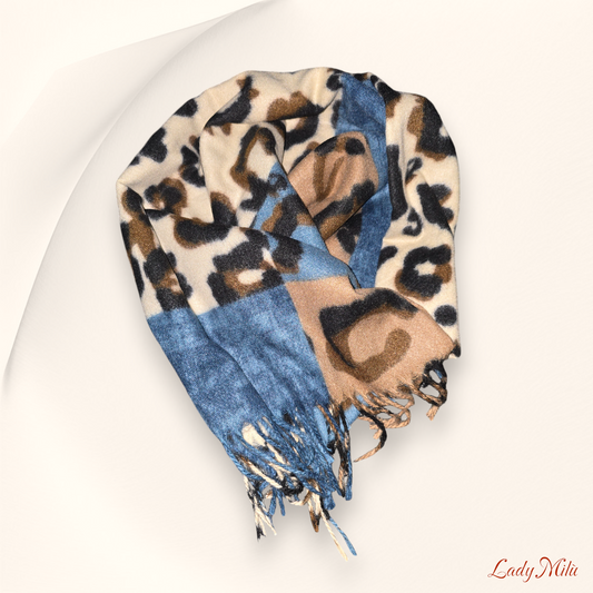 Sciarpa maculata denim e panna