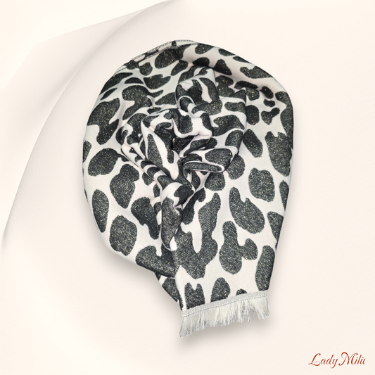 Sciarpa maculata panna e nera laminata