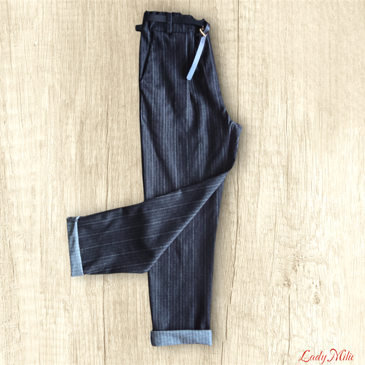 Pantalone jeans nero gessato elasticizzato