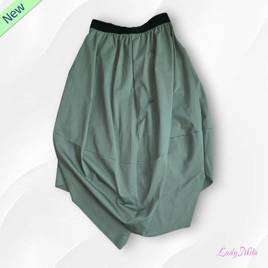 Gonna effetto nabuk lunga asimmetrica nera elastico in vita