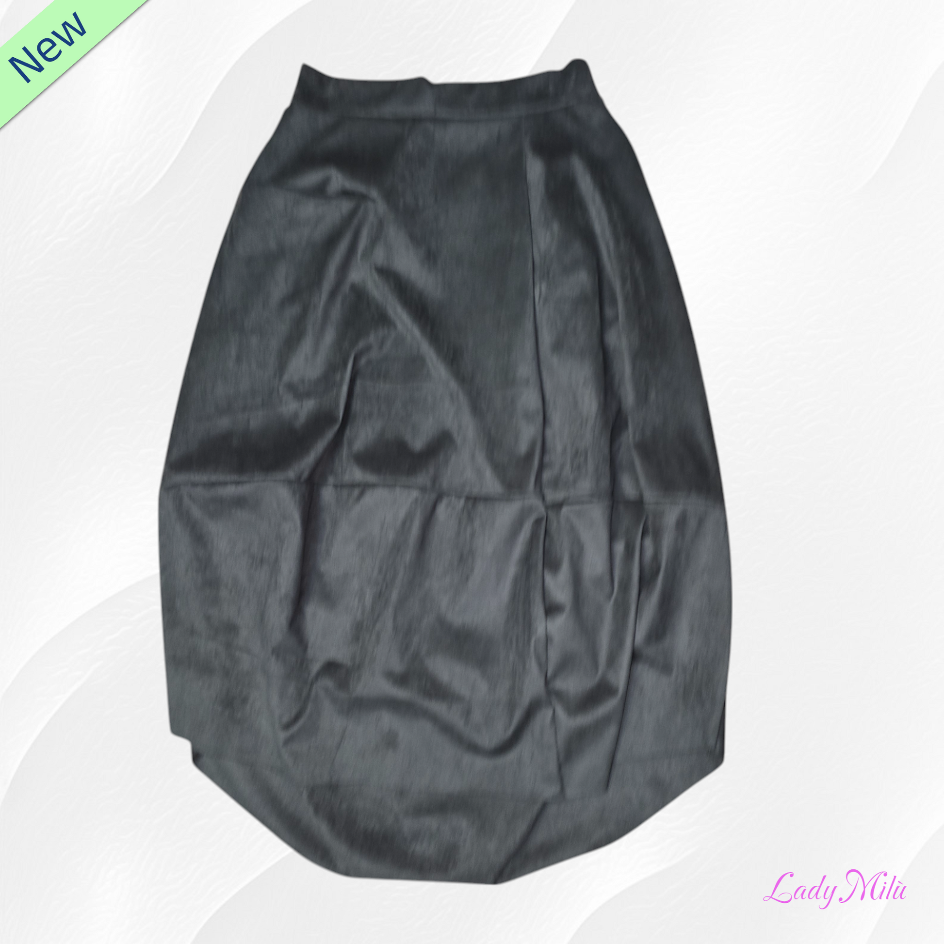 Gonna effetto nabuk lunga asimmetrica nera elastico in vita